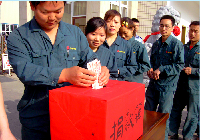 “湖北神河集团是具有高度责任感的集团,我们要尽全集团之力为灾区提供援助。”捐赠仪式上,党总支书记卢仁莲一席话激起了大家心中涌动的激情。常务副总经理王启学、专用车公司总经理金彬等集团领导带头捐款,不到半个小时神河职工就捐款 80000元。